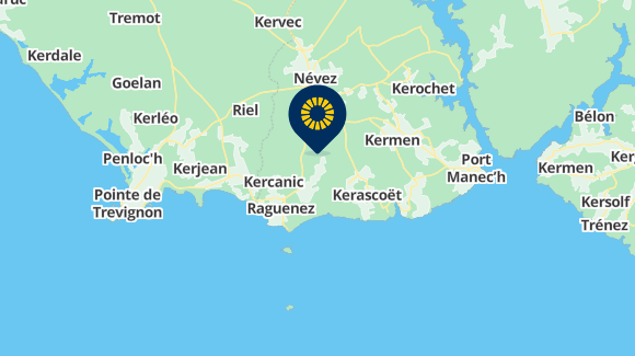 Gelegen in Basse Cornouaille, tussen Quimper en Lorient, in de Pays de l'Aven, ga naar Nevez, lid van het Sensation Bretagne netwerk, met zijn beroemde en romantische huisjes.