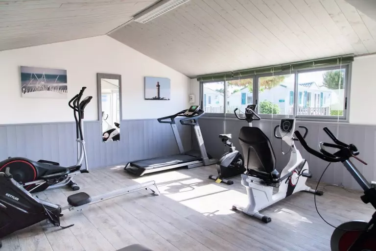U vindt een fitnessruimte en kunnen genieten van onze verschillende faciliteiten: elliptische fietsen, loopbanden, roeier, abs.