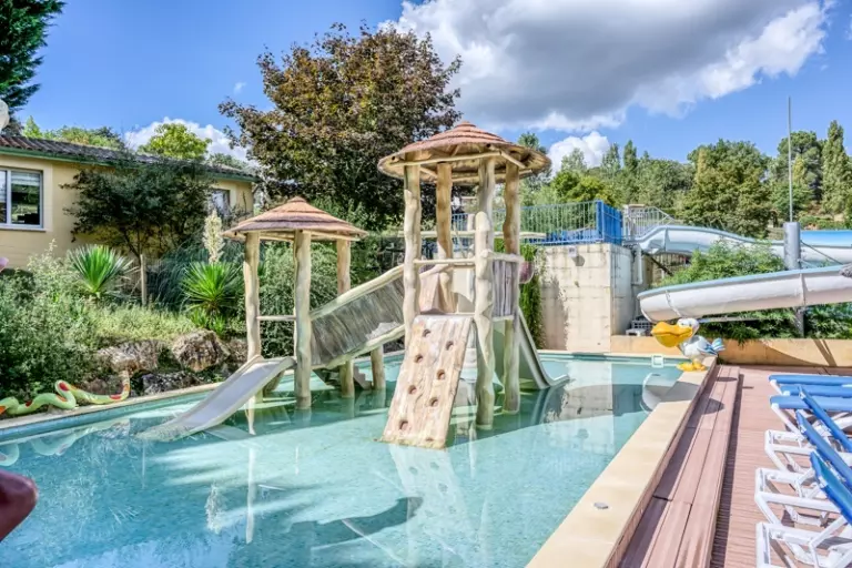 De camping heeft een fantastisch verwarmd watergedeelte waar iedereen zich vermaakt. Het binnenzwembad is ideaal voor een duik bij bewolkt weer, en het buitenwaterpark biedt veel plezier met verschillende zwembaddieptes en drie waterglijbanen. Voor de ultieme ontspanning zijn er ligstoelen en ligbedden waar je heerlijk kunt zonnebaden. En de kleintjes zullen genieten van het kinderbad met glijbaan en waterspelletjes!