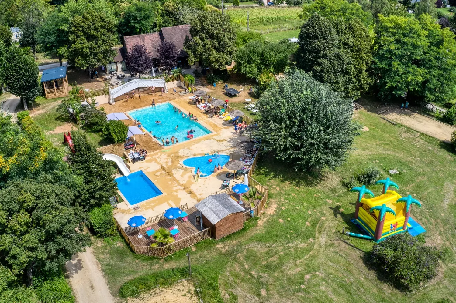 gelegen op een plateau met uitzicht op de vallei van de Vezère, halverwege tussen Bugue en Les Eyzies, de hoofdstad van de prehistorie, de site biedt rust en ontspanning voor een familievakantie in een bosrijke omgeving, op semplacements definieert; plaats ideale uitvalsbasis voor excursies