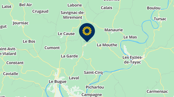 - Bereikbaar per trein : Mauzens-Miremont (3.6 km), Le Bugue (4.8 km)