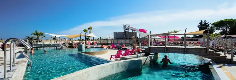 Hert strand ligt dichtbij, al vind je ook een zee van waterpret op de camping. Het verwarmde zwembadcomplex is ruim 2000m2 groot. Met een waterglijbaan, zwemrivier, bubbelpret, apart kinderbad en nog veel meer spetterende fonteinen en tierelantijnen, houden jullie het hier wel even uit. Houd je van zonnebaden? Klap een van de vele ligstoelen in de relaxstand en droom heerlijk weg in de mediterrane zon.