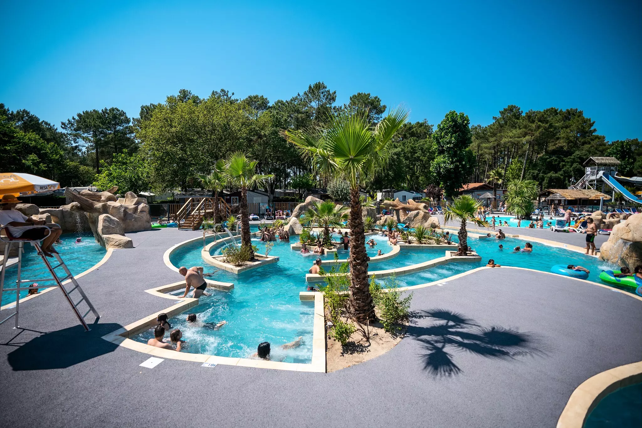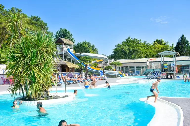 Om je een waanzinnige tijd te bezorgen, heeft Camping Lou Pignada ***** het XL-waterpark uitgebreid. Laat je betoveren door deze extra oase van 1400 m² met een strand en stromende rivier, perfect om rond te dobberen in een grote opblaasband. Geniet van de lagune, de 6 anatomische banken, de massagerivier en de spa tussen de rotsen en watervallen. Ontspan daarna op het 200 m² grote zonneterras en de ligstoelen, omringd door rotsen en tropische planten!