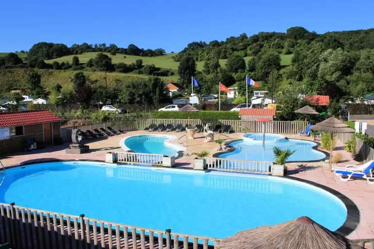 Het zwembadcomplex bestaat uit twee buitenbaden en 1 kinderbad van 40 m² met een champignon fontein en geisers waar de allerkleinsten in alle veiligheid kunnen ravotten in het water.