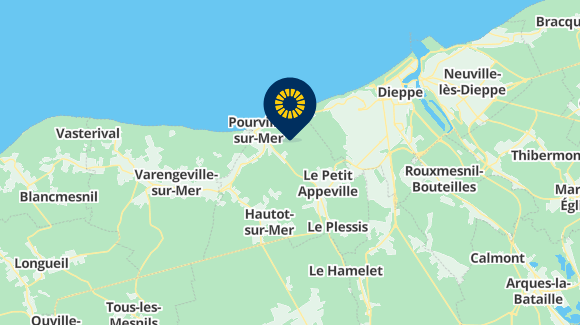 Pourville-sur-Mer is gelegen aan de Normandische kust op 3 km ten zuiden van Dieppe, op 60 km van Rouen en op 180 km van Parijs.