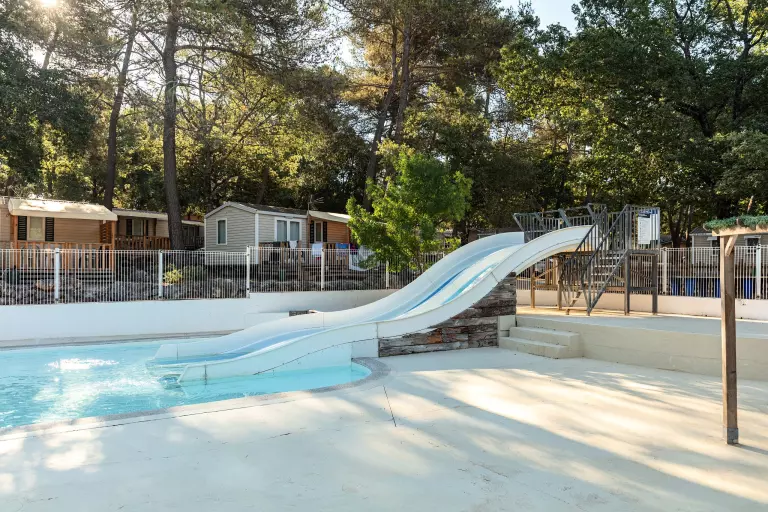 Vanaf dag één wil je waarschijnlijk meteen een duik nemen in het zwemcomplex! De camping heeft twee zwembaden, een mini-waterpark met glijbanen en een superleuke waterspeeltuin. Spetterpret gegarandeerd voor jong en oud!