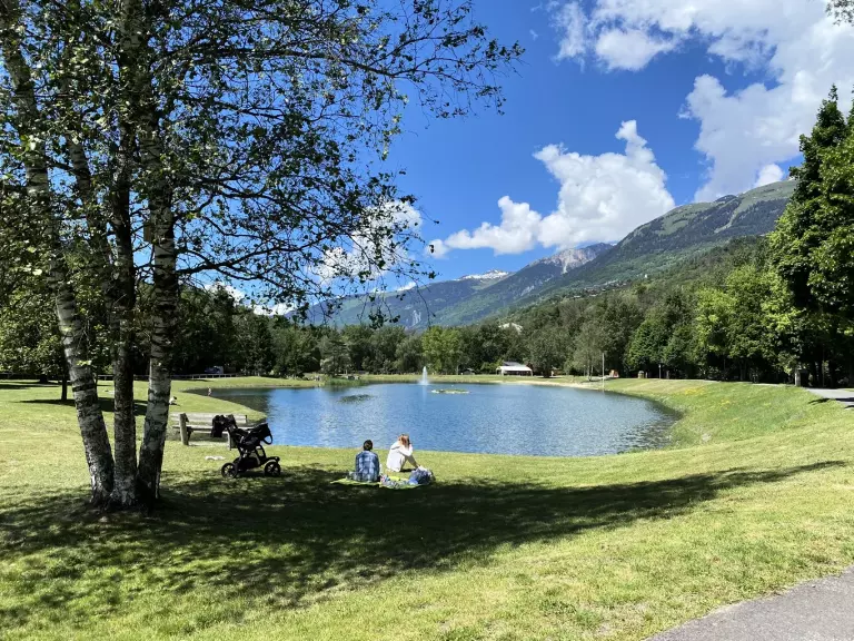 Als de zonnige dagen aanbreken, verandert het decor, maar blijft de adrenaline. Je bent slechts 20 minuten verwijderd van de poorten van het Vanoise National Park voor onvergetelijke wandelingen. Fietsers en motorrijders zullen de nabijgelegen legendes aangaan: Cormet de Roselend, Col de l'Iseran of Petit Saint-Bernard met zijn adembenemende uitzicht op de Mont Blanc. Wil je afkoelen? Alles is hier: een wildwaterbasis recht tegenover de camping \(raften, kajakken, hydrospeed, elektrische scooters\) of, rustiger, een klein meer met zandstrand en bewaakt zwemmen op slechts 4 km afstand.