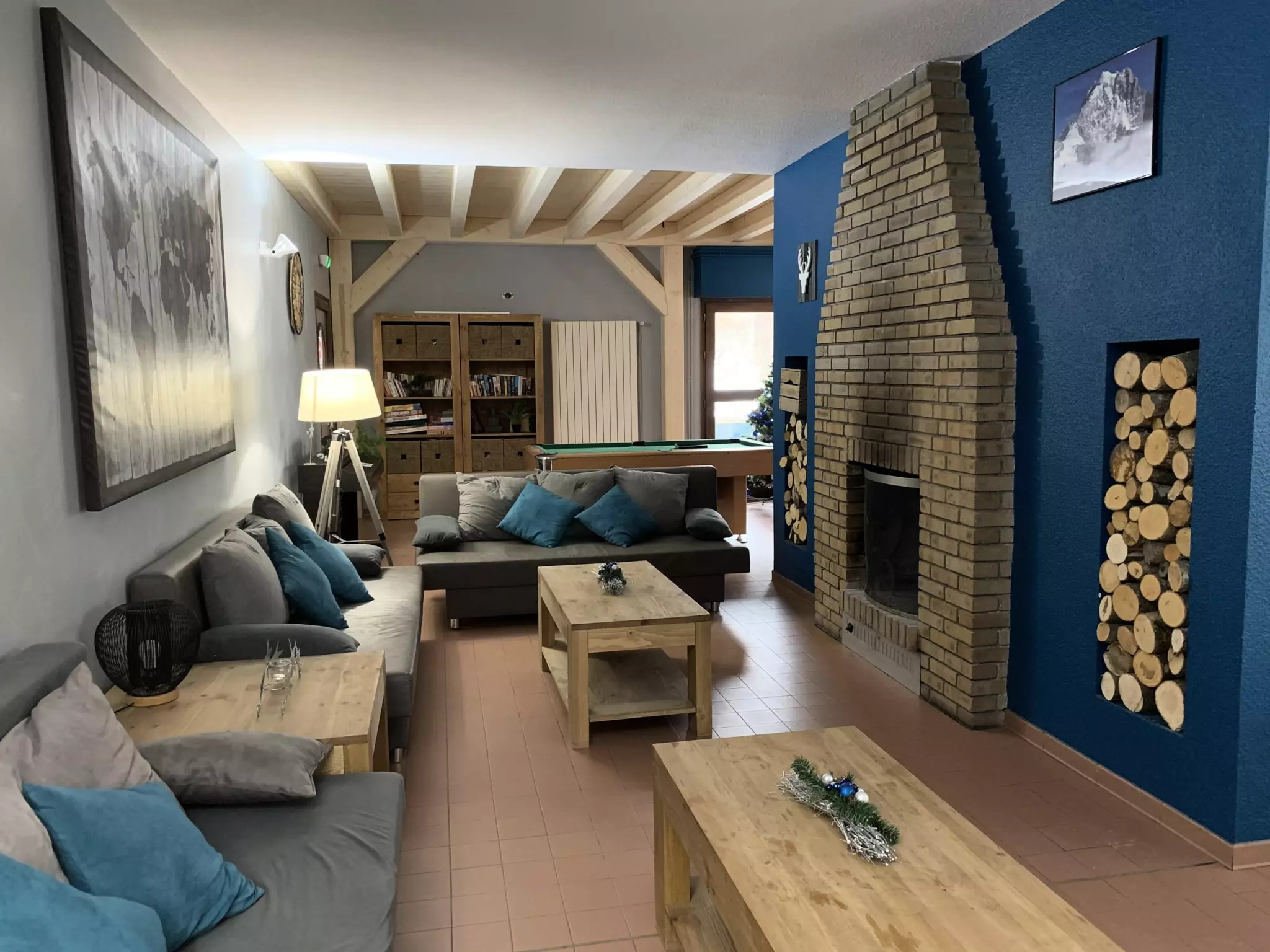 - Een overdekte speelzaal : biljart, tafelvoetbal, bibliotheek, kaartspelen.