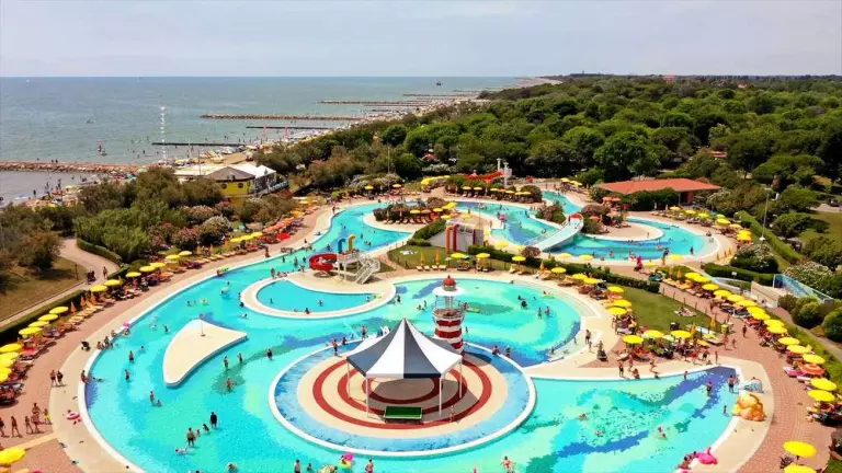 Het aquapark is hier geen zwembad, maar een bestemming op zich. Met 34.000 m² aan water is dit een van de grootste waterparken van Italië.