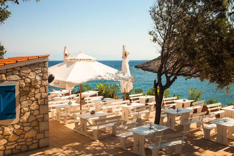 - Er is een haven met kade voor het afmeren van boten aan de ene kant en een prachtige natuurlijke baai aan de andere kant waar je een duik kunt nemen in het kristalheldere water.