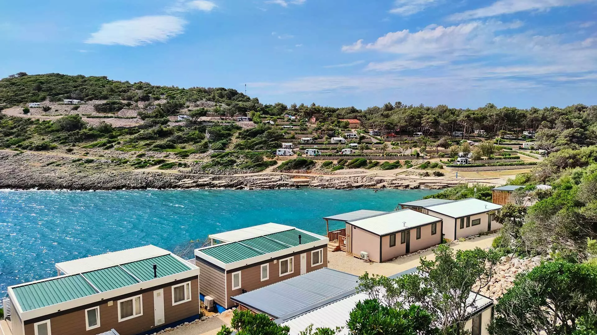 Camping Village Poljana, jouw paradijsje op Losinj, gelegen op het smalste deel van het eiland. Daardoor is de Adriatische Zee met haar kristalheldere water aan beide kanten te zien. De camping ligt dan ook direct aan het strand. Je bereikt deze uitstekend onderhouden camping met een pontje. Alleen al de korte tocht is de moeite waard; je geniet onderweg van prachtige baaien en ongerepte natuur.
