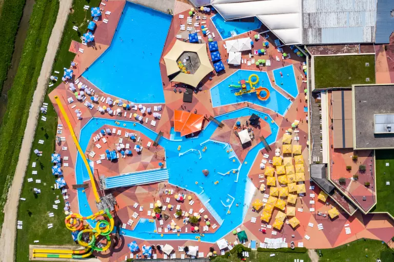 waterpark Water Planet, de spetterende droom van waterliefhebbers. Met binnen-en buitenzwembaden,